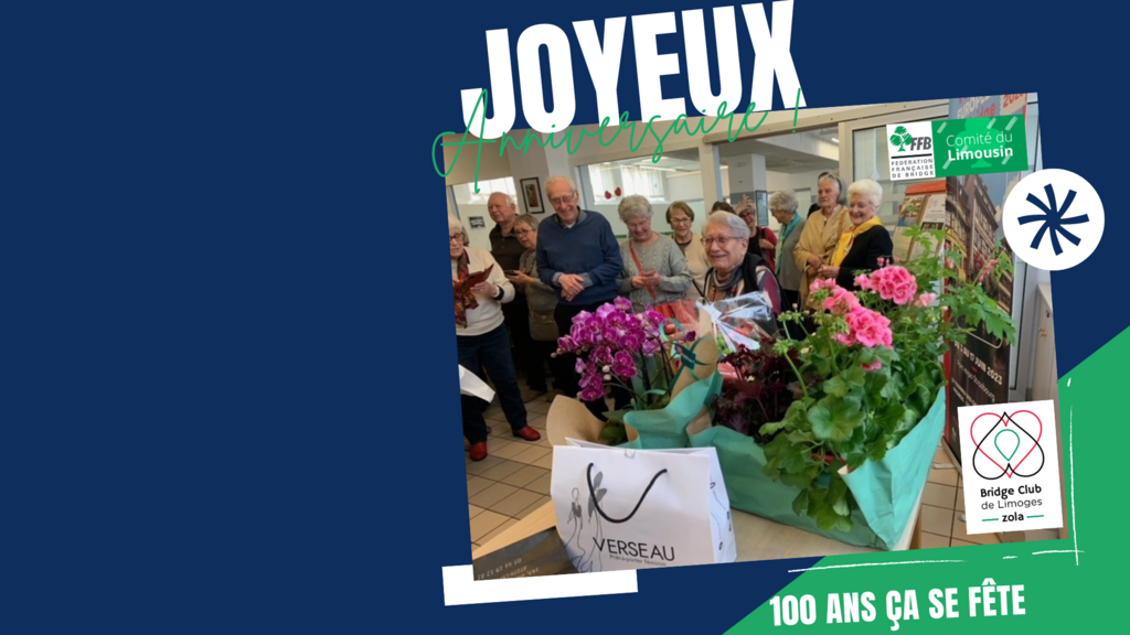 Le BCL était en fête jeudi 13 avril pour les 100 ans d'Aline Moréno, la doyenne du club de zola. Joueuse aguerrie et fidèle membre de l'association depuis plus de 30 ans, elle participe, avec assiduité, aux tournois de régularité deux fois / semaine. Après l'allocution du Président et la remise des cadeaux, un buffet était organisé en son honneur. Les 90 adhérents présents ont levé le verre de l'amitié en souhaitant à Aline beaucoup de bonheur.