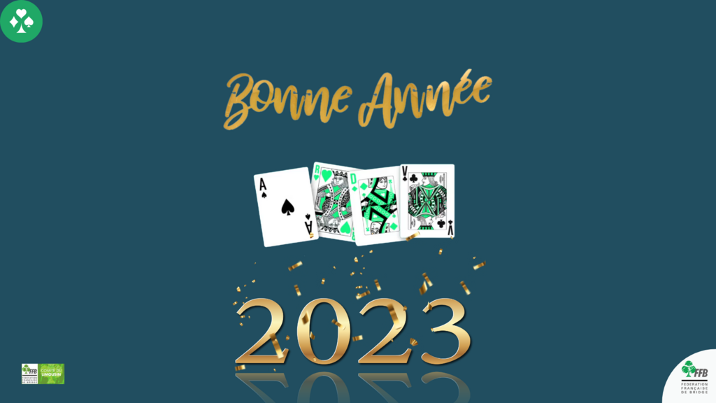 Toute l'équipe du comité du Limousin vous souhaite une très belle année 2023 pleine de réussite et de bonheur bridgesque et personnel.