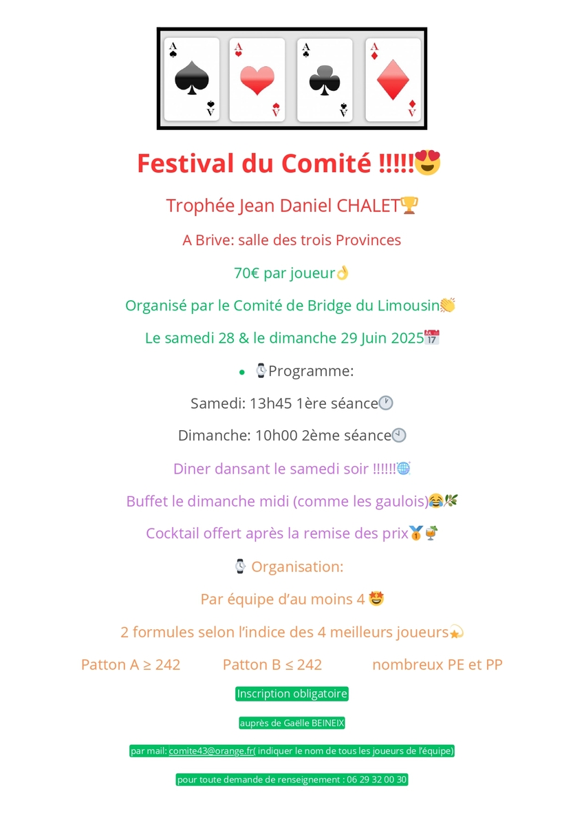 Le Comité du Limousin organise le 28 et 29 juin 2025 son festival.