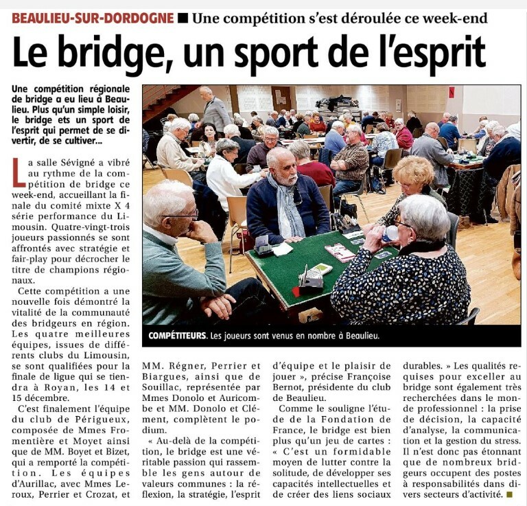Cette compétition, arbitrée par Jean-Louis Bertheas et organisée de mains de maître par le Club de Beaulieu, sa présidente Françoise Bernot et toutes les petites mains indispensables à la pratique de notre sport favori, a rassemblé 172 joueurs !