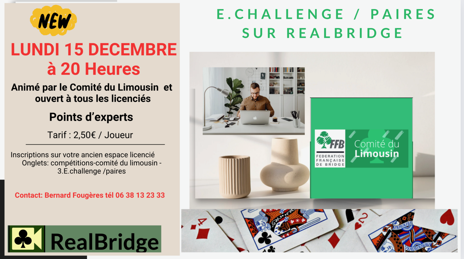 ➡️ rubrique Espace Compétition, puis Comité du Limousin > E.Challenge par Paires